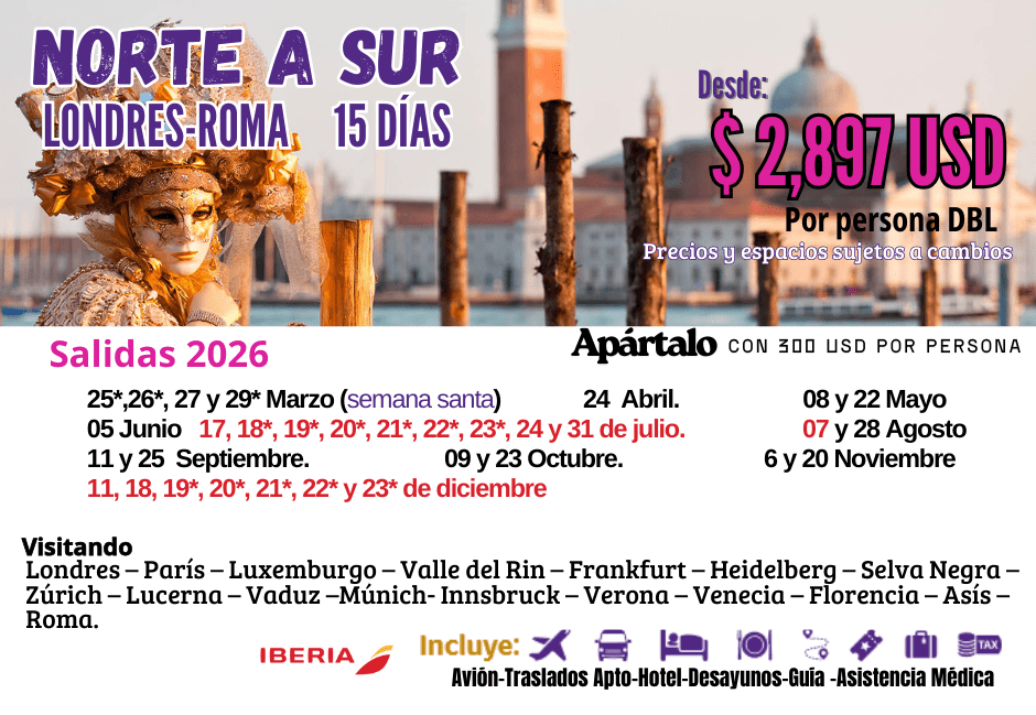 EUROPA DE NORTE A SUR T. Baja desde: USD 2897 USD Por persona