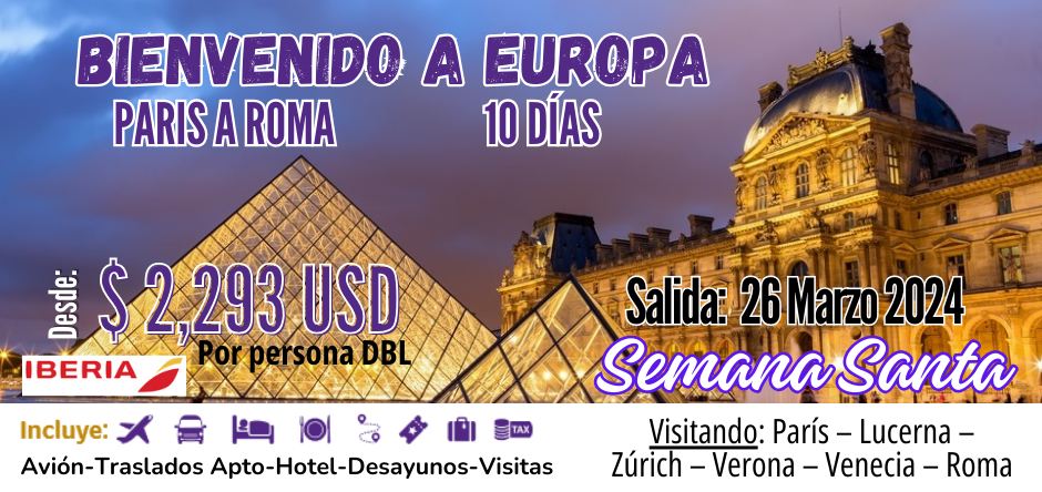 BIENVENIDOS A EUROPA Desde $ 2,293 USD DBL