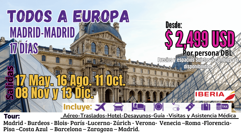 TODOS A EUROPA desde: USD 2499 Por persona.Hab. Doble