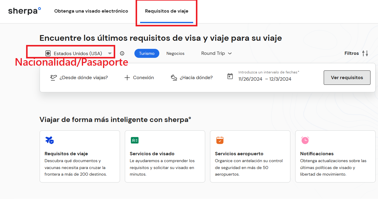 Ingrese la nacionalidad de su pasaporte y revise requisitos.